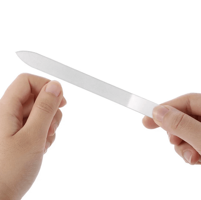 A premium crystal glass nail file that shapes nails gently without causing micro-tears or damage. The attached buffer side smooths edges and adds a natural, healthy shine to the nail surface. Durable and hygienic, designed for years of effective use.
